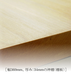 材木屋として、神棚販売業者として、本物の”木”を扱って60年以上の歴史を持つクボデラ。そのこだわりが神棚製造に活かされています。プロの目で厳選した無垢材を惜しみなく使った神棚(棚板)は、日々の暮らしを祈るのにふさわしい荘厳な仕上がりです。